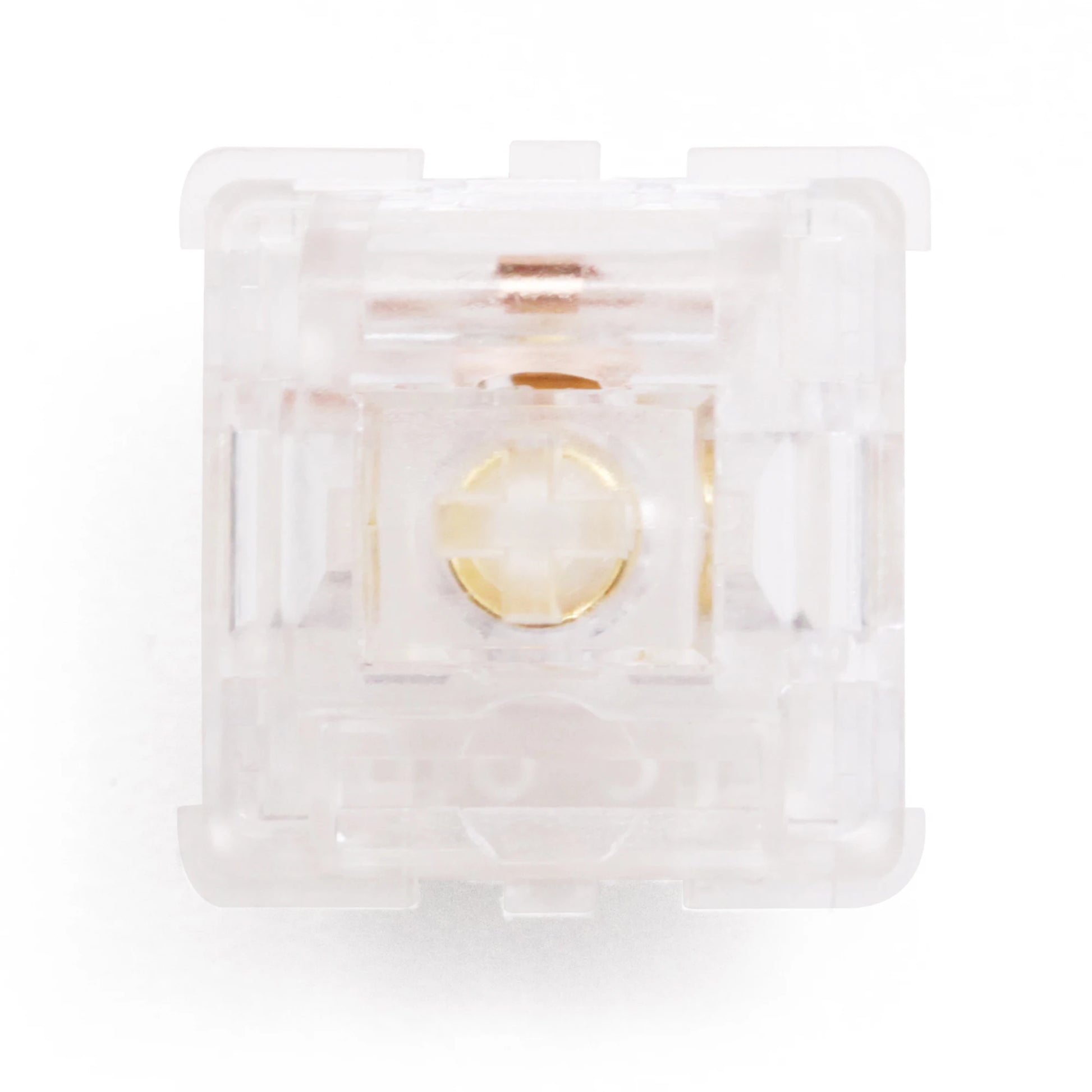The Everglide Aqua King linear switches are built for enthusiasts who prioritize smooth, consistent keystrokes with a premium aesthetic. Featuring fully transparent polycarbonate housings, these switches beautifully showcase RGB lighting while offering a fluid typing experience from top to bottom. With gold alloy contacts and a gold-plated stainless steel spring, they’re engineered for long-lasting performance and reliability. Available in three actuation weights, Aqua Kings are ideal for mechanical keyboard users seeking both style and substance.